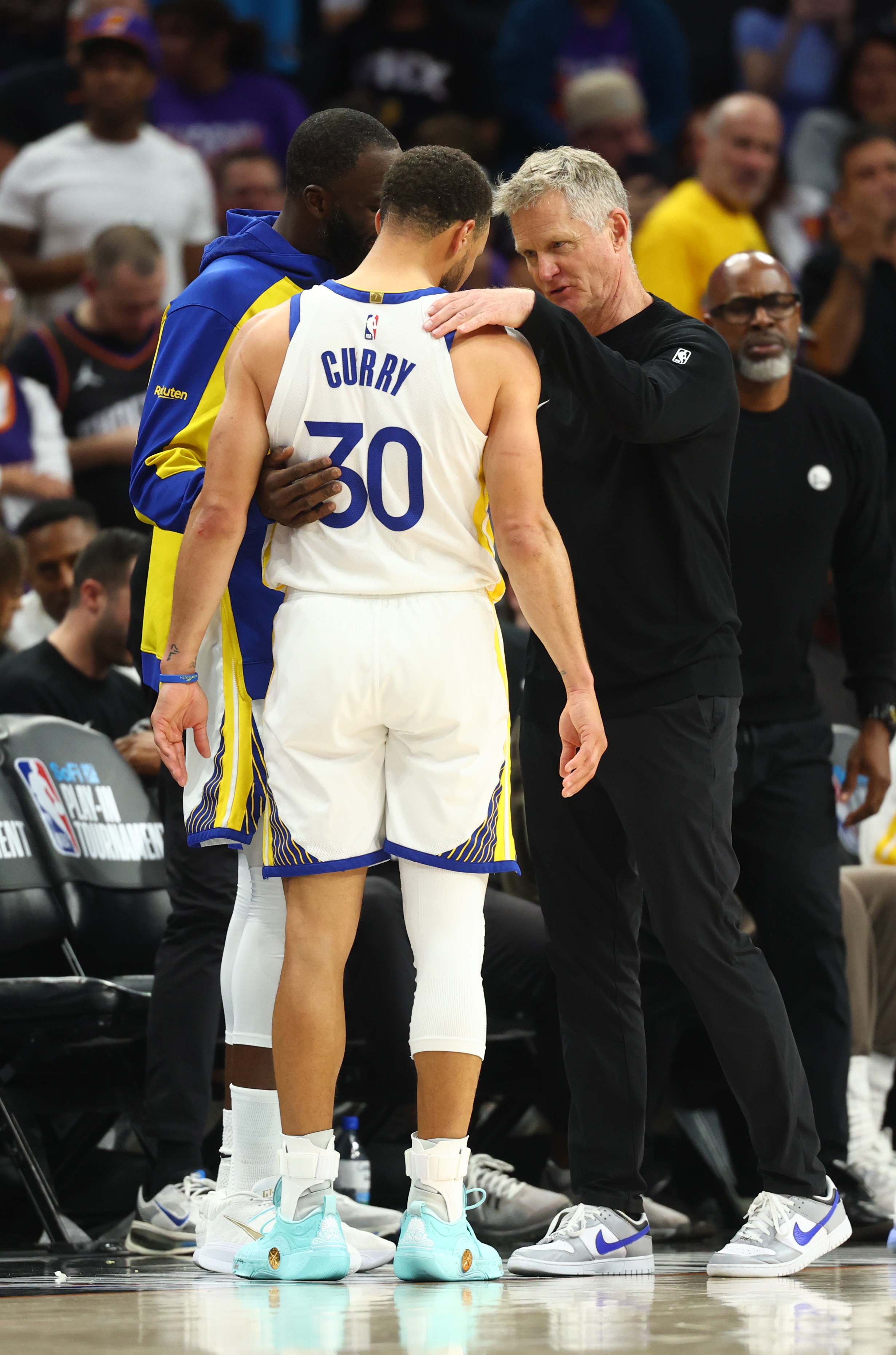 “我希望他们三人能再试一次,看看他们是如何组建阵容的,虽然本赛季的结果并不理想。我认为对于科尔来说,他是否会再执教一年还是个未知数。我认为他已经倾向于离开了,并且他表示本赛季发生的事情不会影响他的决定。很明显,追梦和库里不希望看到另一位教练走进球队。看着他们的拥抱,真是太感人了。我真的很喜欢那个画面。即使我们有库里和追梦,我不知道球队是否还能再次登上巅峰。即使科尔不说,他也知道利用库里和追梦的最佳时机已经过去了。” Monte Pool表示。